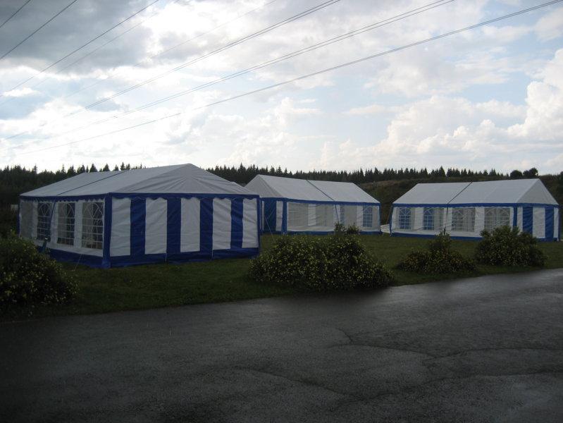 Tents were ready just before rain started. Teltat saatiin valmiiksi juuri ennen sateen alkua.